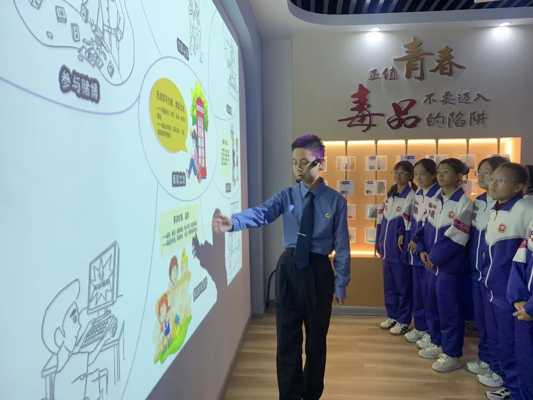 在参观中,同学们依次驻足各展区,通过机器人答疑、全息投影展示等智能技术,直观了解法律的起源与发展历程。检察官结合校园欺凌、电信诈骗等青少年身边的真实案例,重点讲解了不良行为的危害、刑事责任年龄界定等关键内容,让抽象的法律条文变得鲜活可感。