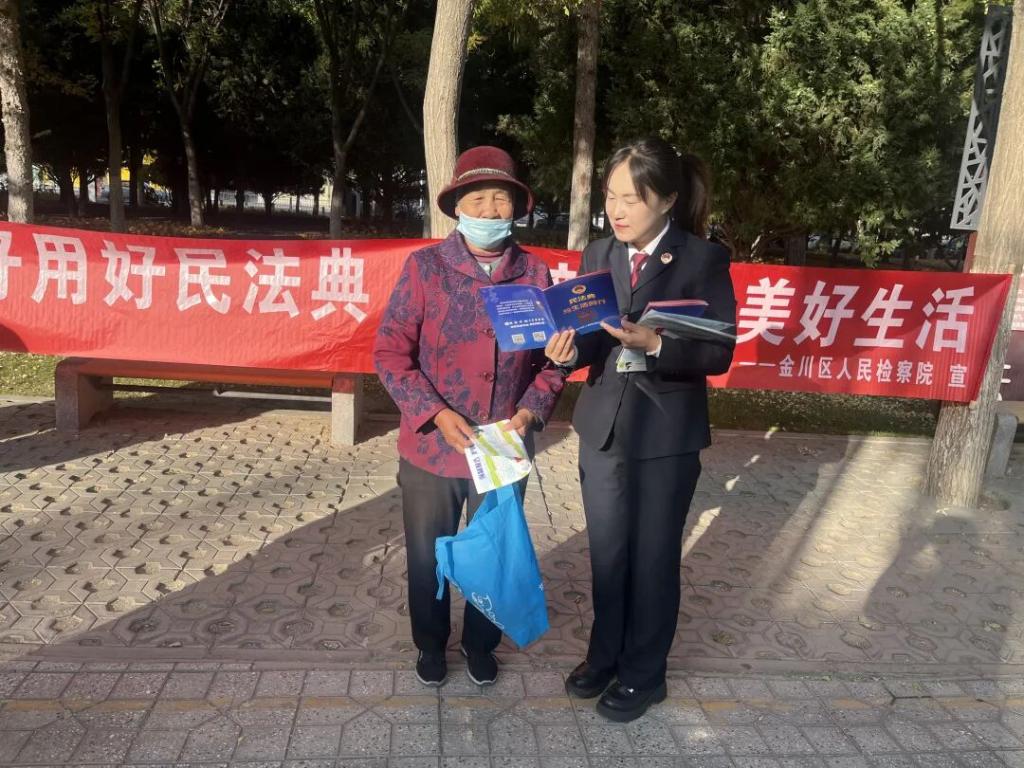 《民法典》是“社会生活的百科全书”,与群众日常生活紧密相连,是维护群众合法权益的法律利器。为使这部“民生法典”精准服务社区特定人群,近日,金川区人民检察院组织检察干警走进昌都里社区,针对社区老人多、部分居民行动不便等实际情况,开展“送法上门·精准普法”活动,把《民法典》送到居民身边。