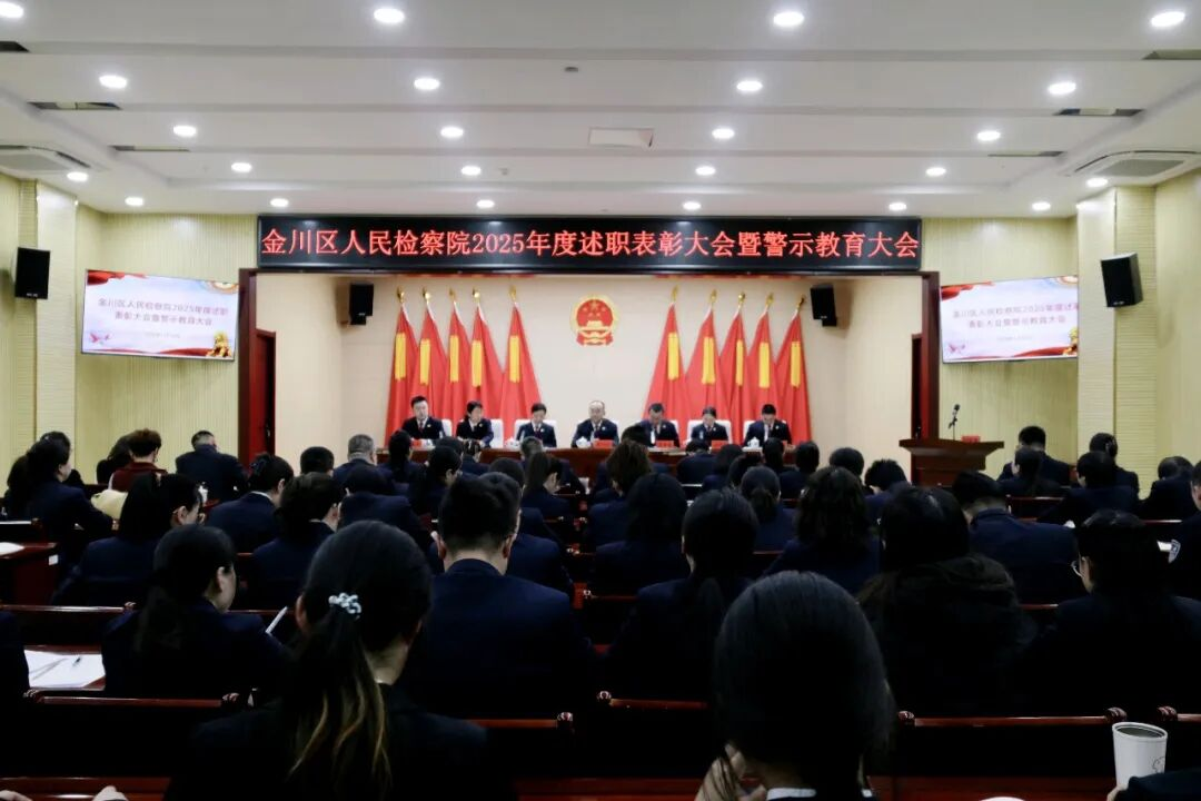 1月16日下午,金川区人民检察院召开2025年度述职表彰大会暨警示教育大会。党组书记、检察长黄旭运出席会议并讲话,党组成员、检委会专职委员及全体干警职工参加会议。