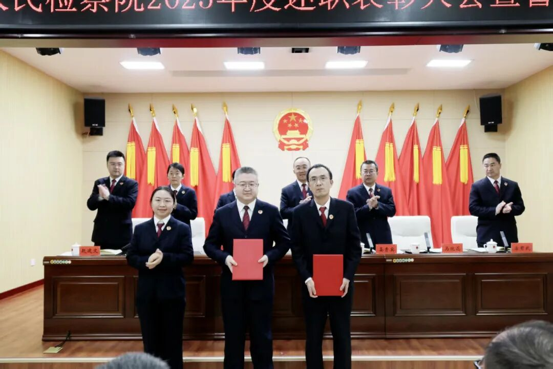 述职表彰大会上,各部组负责人围绕2025年重点工作、亮点工作完成情况进行了述职,分管领导结合实际情况进行点评。党组成员宣读了听证员履职考核情况的通报,并对考核优秀的听证员及先进集体、先进个人、优秀党务工作者、优秀共产党员予以表彰,院领导为受到表彰的集体、个人颁发了奖牌和荣誉证书。黄旭运代表党组对受到表彰的先进集体和个人表示热烈祝贺,并向每一位为金川检察事业付出辛劳的干警职工表示衷心感谢。